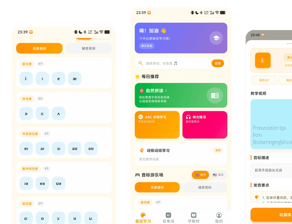 专业视频教学指导,智能识别发音问题,及时纠音建议。英美发音自由切换,标准音标标注,帮助掌握地道发音。